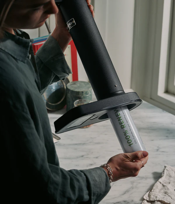 CO2シリンダー1本で、付属のPETウォーターボトル約60回分の炭酸水が作れます。定期的に炭酸水を飲む方なら、aarkeの炭酸水メーカーで、シリンダー1本あたり約100本の使い捨てペットボトルを削減できます。